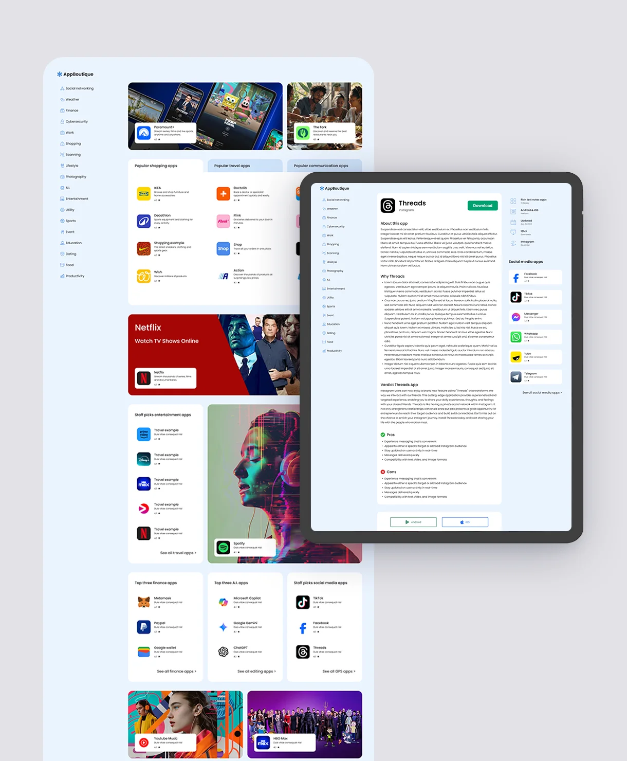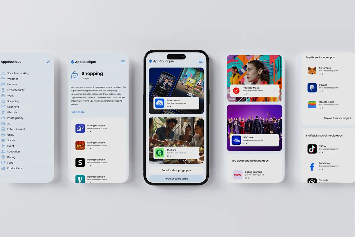For AppBoutique we developed a modern and intuitive platform where great apps do not disappear among thousands of others. By combining community ratings with a carefully curated selection and a constant flow of new releases, the platform helps users quickly discover apps that are truly worth their time. The result is a fresh and reliable place for discovering apps. A true boutique for the app world.