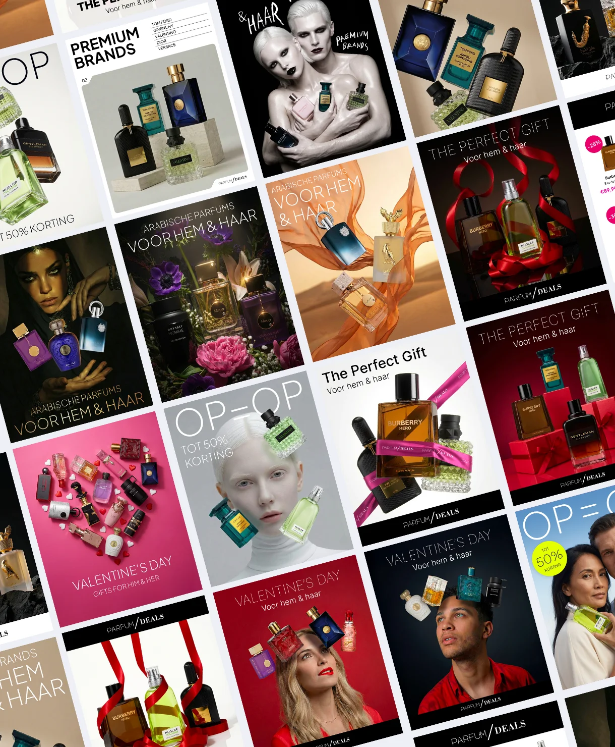 Parfum Deals is a fragrance platform developed by Sales Factory to bring premium perfumes to a wider audience through a strong digital presence and a focused marketing strategy. We created the full brand identity, designed and built a cross-device Shopify webshop, and developed campaigns that drive visibility and sales across multiple channels.